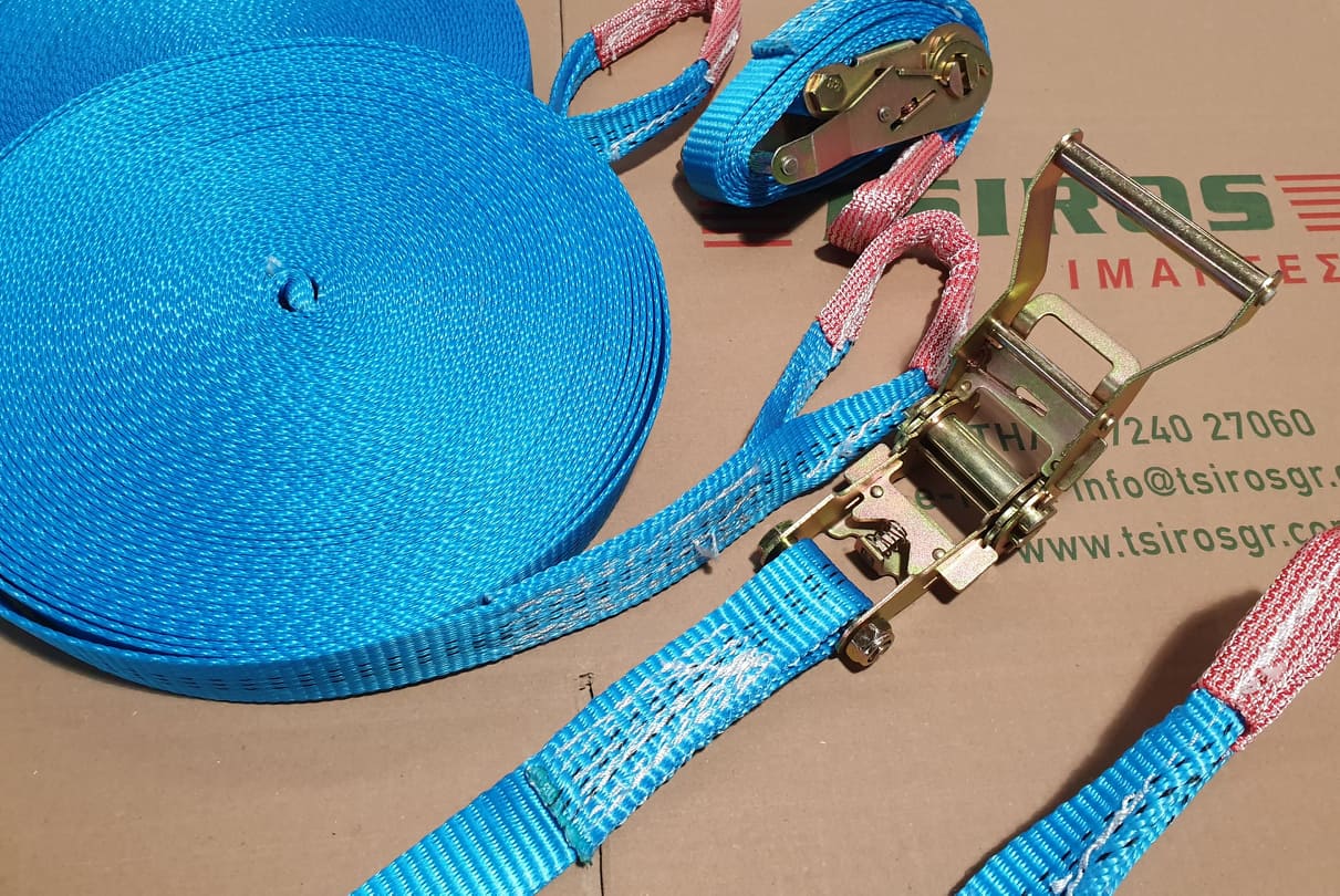 Το συστήματα πρόσδεσης φορτίου αποτελείτε από μια καστάνια σύσφιξης με γάντζο στο ένα άκρο και έναν ιμάντα με γάντζο στο άλλο άκρο. Οι καστάνιες είναι μεταλλικές( γαλβανισμένες ,Ανοξείδωτες είτε βαμμένες).Οι Ιμάντες κατασκευάζονται από υψηλής αντοχής πολυεστερικά νήματα , χαμηλής επιμήκυνσης από 550 Dtex εώς 6600Dtex τα οποία μπορεί να φτάσουν και τα 600 νήματα σε κάθε γραμμή ανάλογα με την αντοχή και τα χαρακτηριστικά του ιμάντα.(Ιμαντες προσδεσης δεστρες φορτηγων )